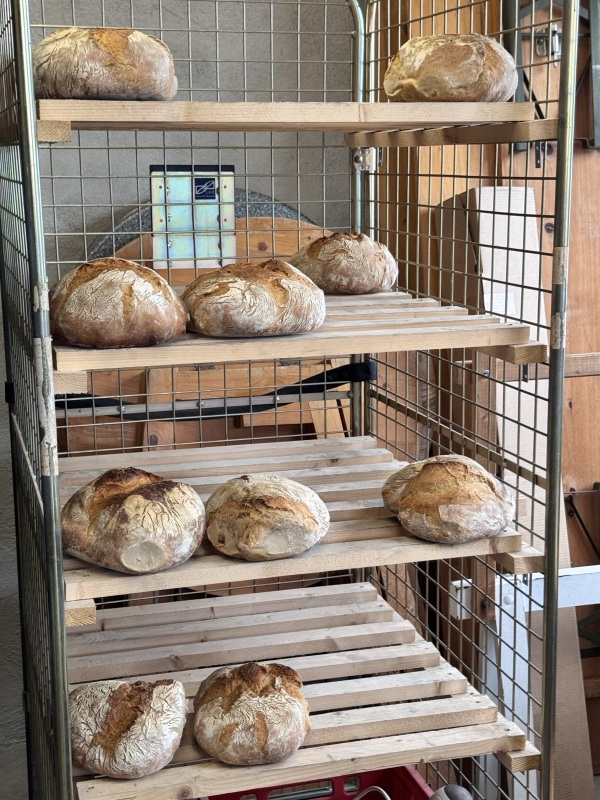 Nach einer kurzen Einführung ins Backen und einer Besichtigung des Backhauses mit dem beeindruckenden Holzbackofen ging es dann gleich los: Für das gemeinsame Frühstück wurden kleine Brötchen geformt, die später noch warm verspeist wurden. Sehr lecker!