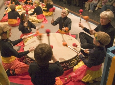 Seit 1995 kooperiert die Grundschule mit der Tam-Tam-AG der Comenius-Schule. Unterstützt vom Förderverein entsteht eine Trommelgruppe unter der Leitung von Brigitte Saumweber-Eltrich. Jährliches Highlight ist das Begegnungskonzert, hier ein Bild aus dem Jahr 2006.